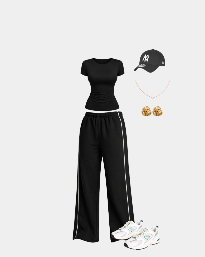 For days when comfort is key, elevate your athleisure game. Pair some joggers with a cute fitted top. Finish the look with some sneakers and minimal accessories.